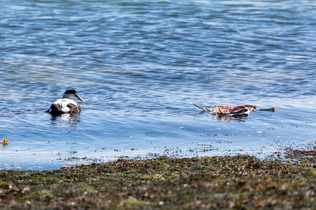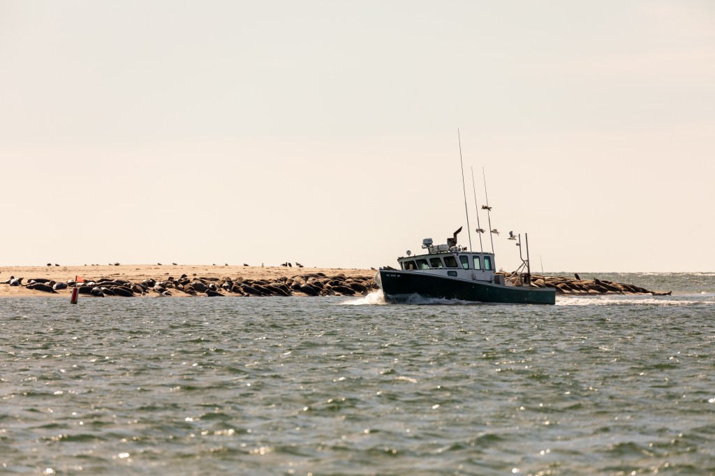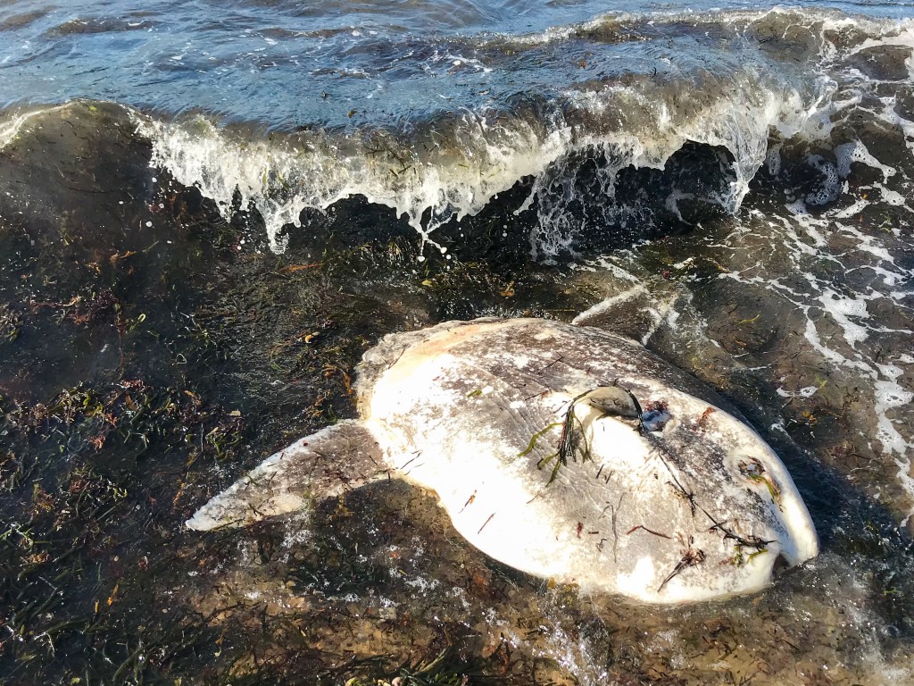 Mola Mola, or Sunfish, come to Cape Cod to eat jellyfish. They lay on their sides and float on the surface to warm themselves and kill parasites. I don’t think this one was warming itself, though.