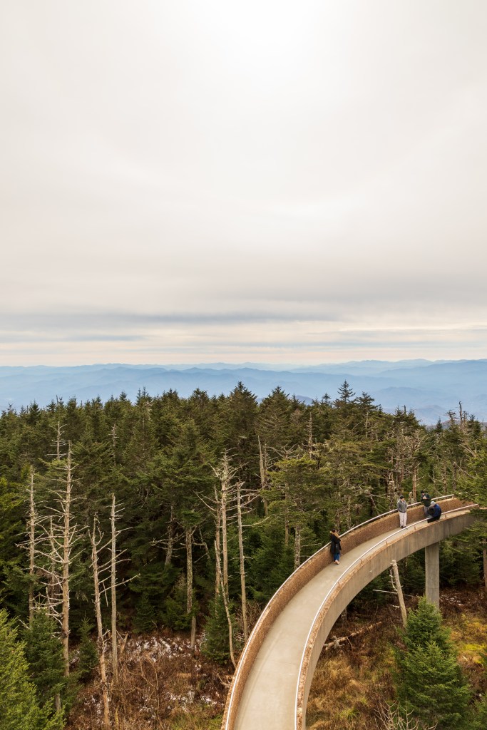 Clingman’s Dome is the highest point in Tennessee at 6,643 feet. You can drive most of the way to the top (yes, Evelyn did fine in the oxygen-deprived air), with only a short hike to the lookout. In my opinion, this is both good, because it lets more people experience the views, and bad, because it lets more people experience the views.