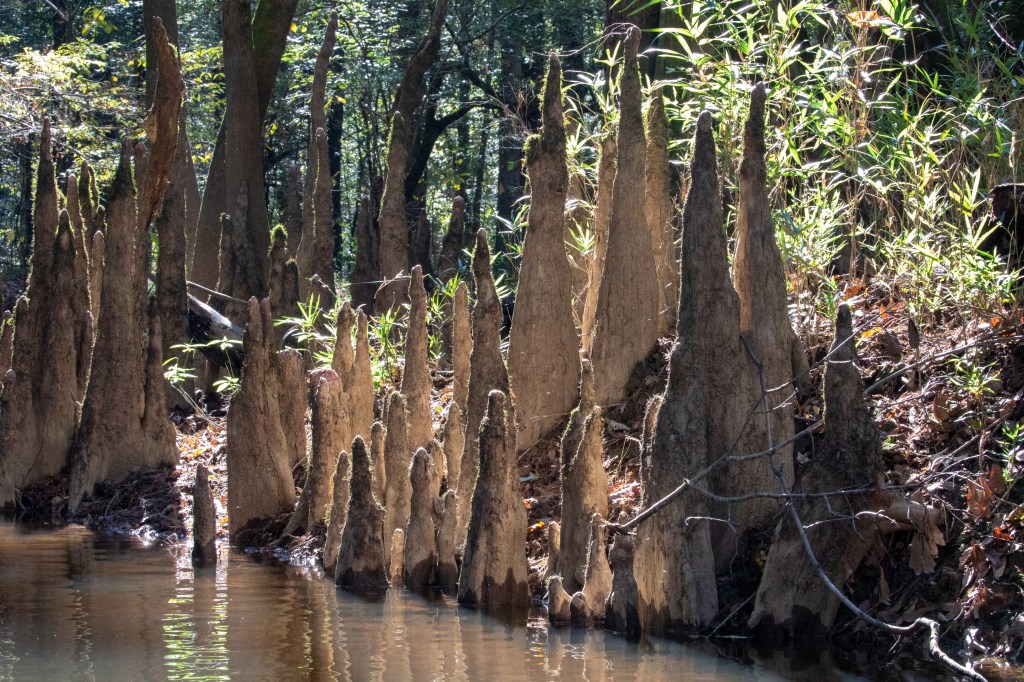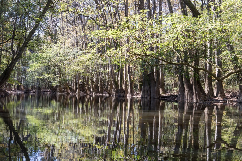 Congaree received the National Park status in 2003, and I think it’s well deserved. With an average mature tree height of over 130 feet, and many trees like the Bald Cypress and Loblolly Pine reaching North of 150 feet, it’s hard to keep from falling off the boardwalk as you strain your neck upward. It’s the largest expanse of old growth bottomland hardwood in the Southeastern United States, and is one of the highest temperate deciduous forest canopies remaining in the world. It has 25 champion trees, more than anywhere else in the United States. A champion tree is the tallest single tree yet found of it’s species. The Loblolly Champion Tree in Congaree is 167 feet tall.