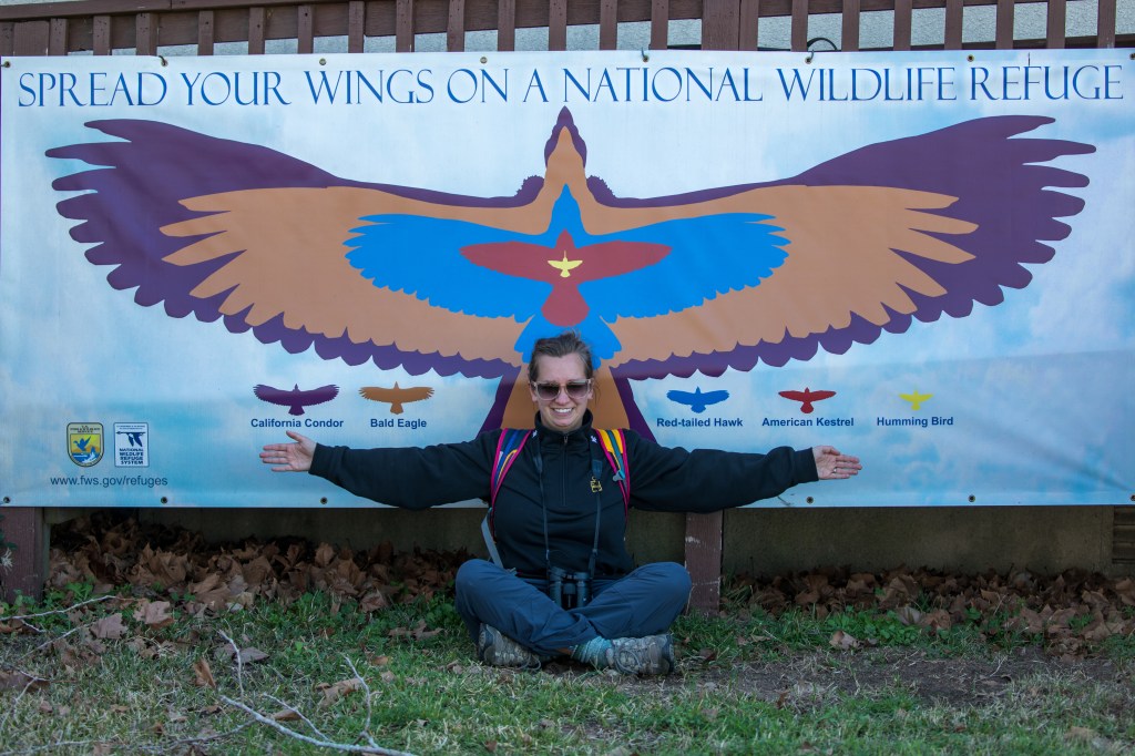 Love the photo of Abbey in front of the Spread Your Wings sign! Cool visual of the size of the different birds, plus the colors & superimposition really looks like Native American artwork!! Great bridge photo too!