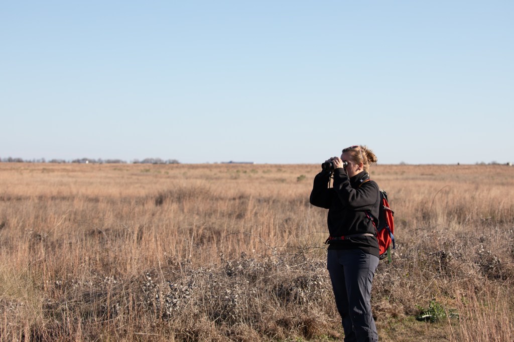 As we started inland into Texas, the scenery changed quickly to the rolling hills and savannas of Texas. We stopped at the Attwater Prairie Chicken National Wildlife Refuge. Like the Mississippi Sandhill Cranes, these birds are critically endangered and live entirely on or around the NWR. There are 102 birds left in the wild. We hiked the trails for hours, seeing none, until finally we flushed up maybe a dozen as we were walking back to Evelyn. It’s hard to tell the difference between these and other species of prairie chicken, so I can’t be certain, but I like to think we saw the real deal.