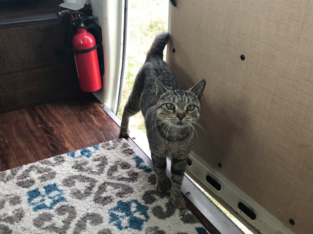 That night we camped at a state park. The weather was pretty bad; reported wind gusts to 75mph. We dropped the top in Evelyn, and when a tornado warning was issued at midnight, Abbey and I ran to the shelter house and hung out in the women’s bathroom for an hour. It was so windy I could feel the pressure changes in my ears. We were fine, and so was Evelyn.