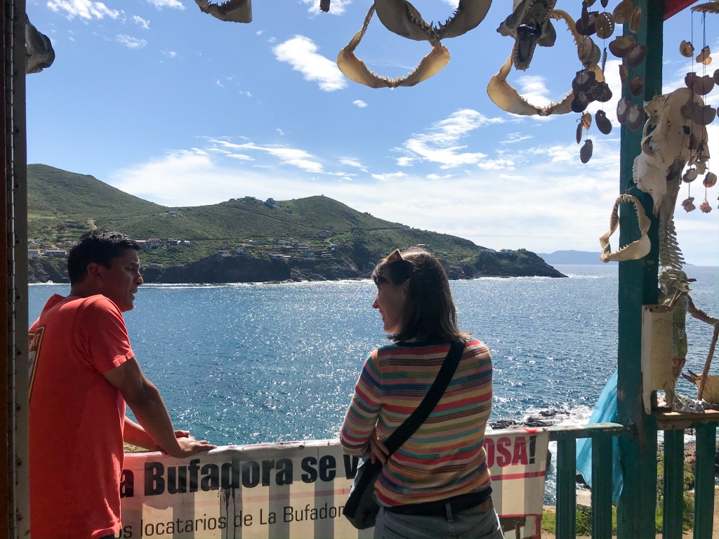 Janell talked up one of the souvenir shop workers and discovered that we had just missed seeing whales. This is the view from his office. He kept calling Janell “Mi Reina.” Abbey and I just rolled our eyes.