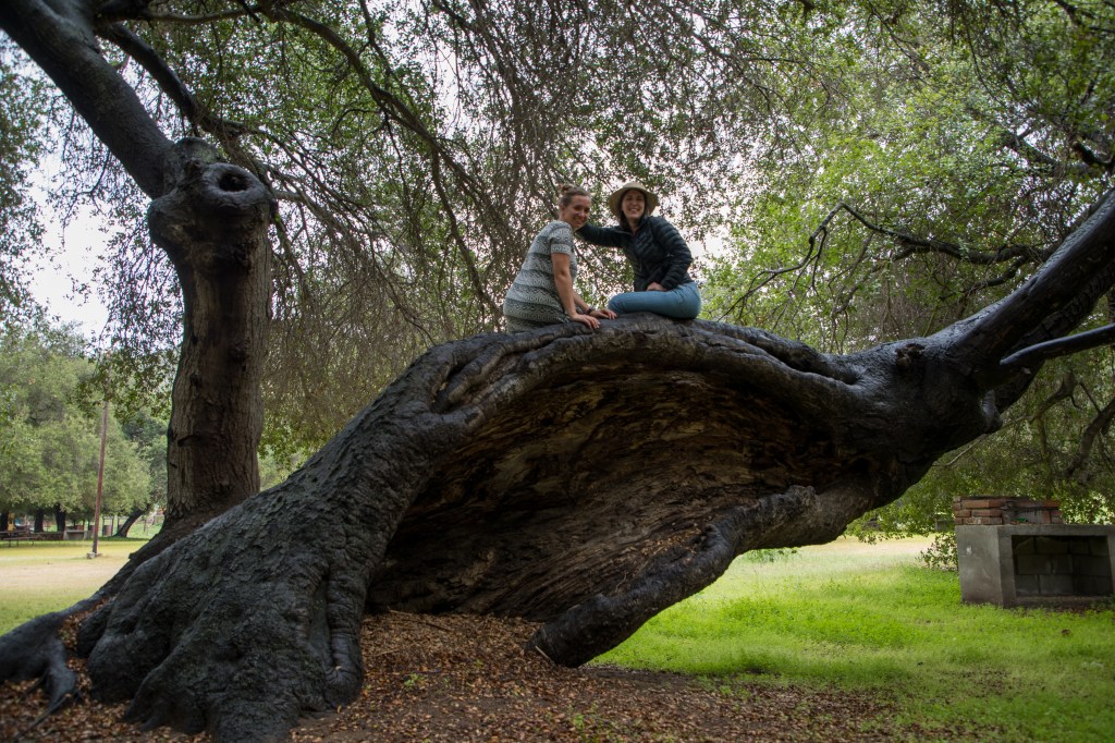 We drove down some pretty remote dirt roads in search of a campground (a real campground and not a tourist campground). Tree branches were scraping on Evelyn and I think Abbey and Janell were getting nervous, but then we found it. We were the only ones at the campground (which cost something like $3) and it was a beautiful grass opening with interspersed Live Oaks. Some of them were quite large.