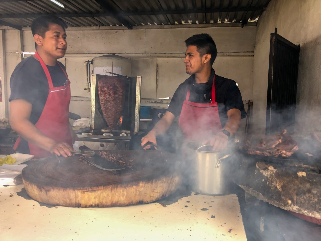 Janell saw a roadside taco place with a ton of locals around it. We U-turned to see what the hubbub was about. Good thing we did. I love that Mexico doesn’t have fast food on every corner. Rather, they have these little food shops with food that is better and less expensive.