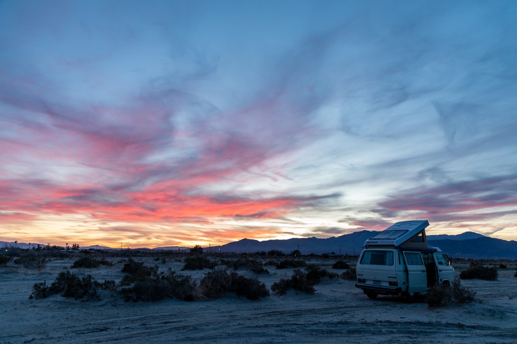 After the BLM land we continued West to Joshua Tree National Park. The park is unique and beautiful, and like many other National Parks, it’s pretty obvious why it was given the designation. In the Southern region of the park you’re still in the Sonoran Desert, but as you climb North, you enter the Mojave. This desert is brimming with wildlife: we saw birds, hawks, lizards, and dozens of squirrels, chipmunks, and rabbits. Joshua trees are everywhere, too, but they’re actually a type of yucca, not a tree.
