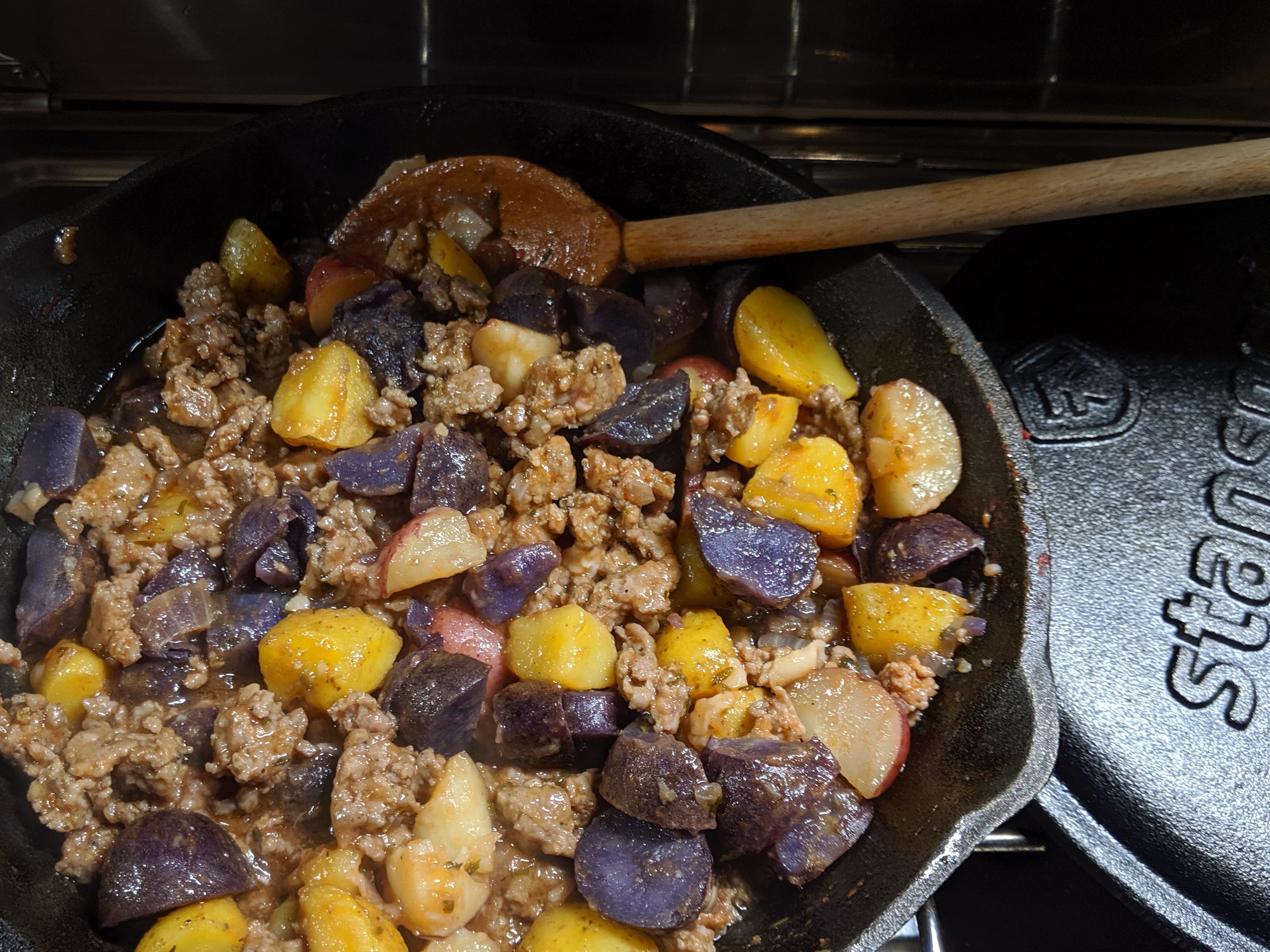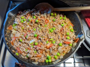 - Note: Depending on desired thickness, you might need to add water and/or flour to thicken. It doesn’t take a lot of flour, so if you are not confident, add in ½ teaspoon increments, stirring in between. Optionally, you could add tomato paste in earlier, but I didn’t have tomato paste at the moment and was miles from any town of substance.