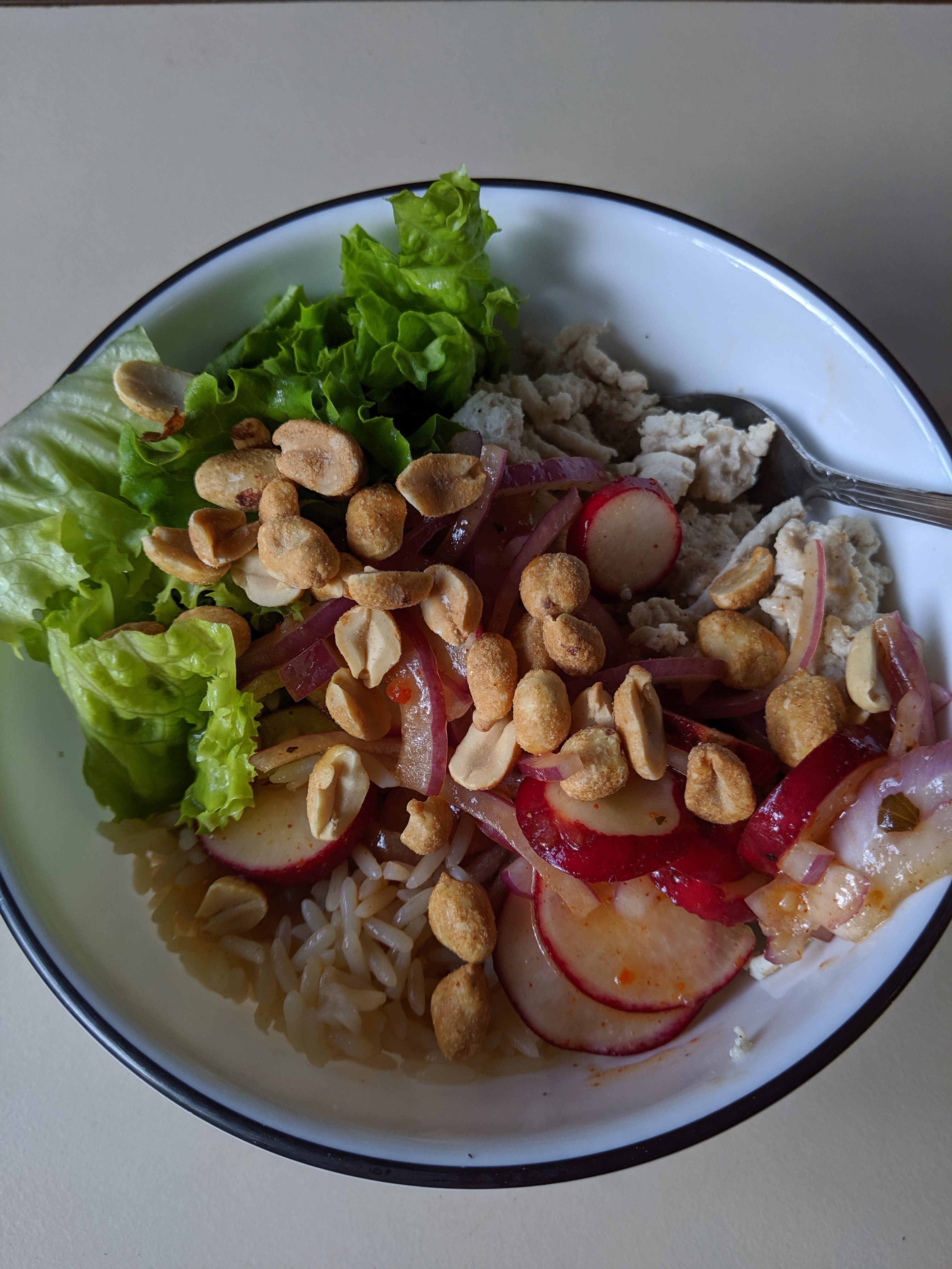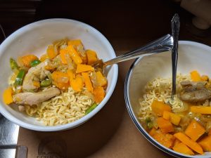 - ramen noodle packet, chicken flavored (Day 1, stir fry)